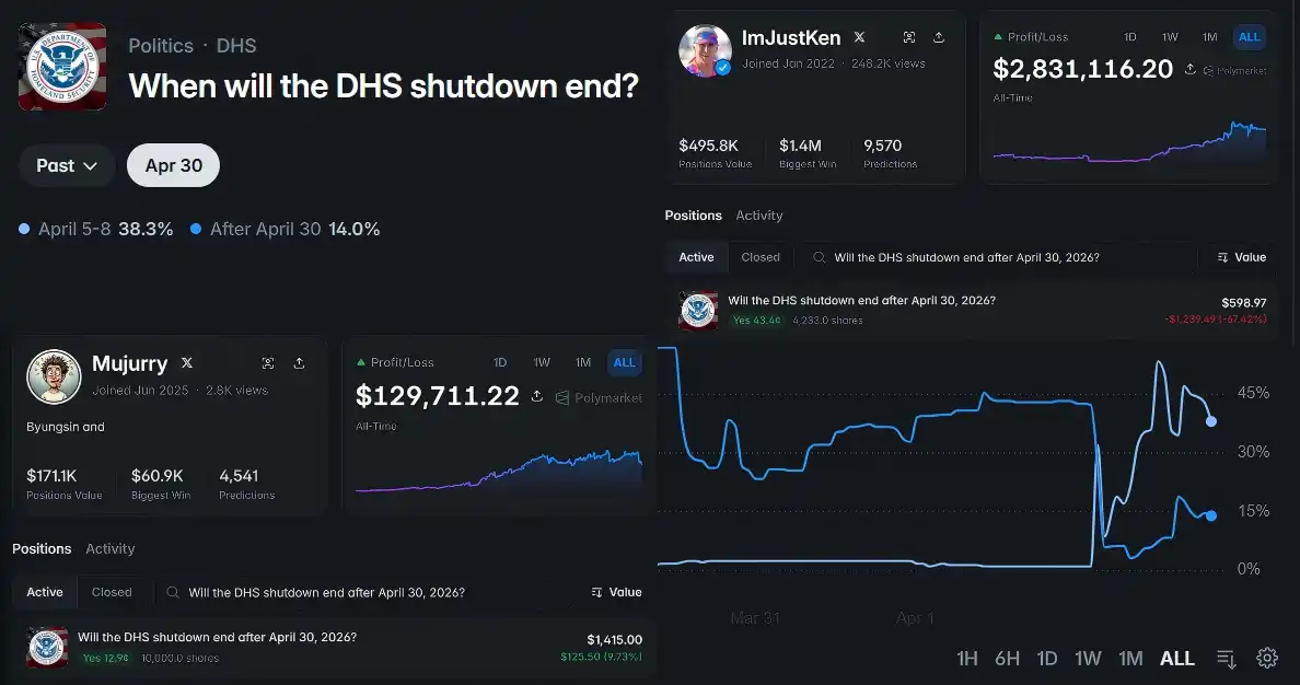 So far, there have been incidents on Polymark: "DHS stoppage will end ." At the time of submission, the probability of termination between 5 and 8 April was 44 per cent, while the probability of closure in April was 14 per cent。